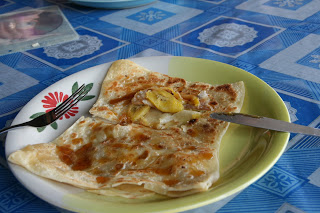 W porze lunchu zaglądaliśmy do knajpek na plaży w których serwowano przeróżne pyszności. Naszym łupem padały kolejne mniej lub bardziej lokalne specjały. Z faworytów: Veggie Curry typowe dla tych rejonów (okazało się, że rewelacyjne curry można przyrządzić nawet bez ochłapa mięsa), sałatka z zielonego mango z krewetkami i pikantnym sosem, świeże owoce i oczywiście nieśmiertelne Roti Canai w różnych wersjach: z masłem i czosnkiem lub na słodko.