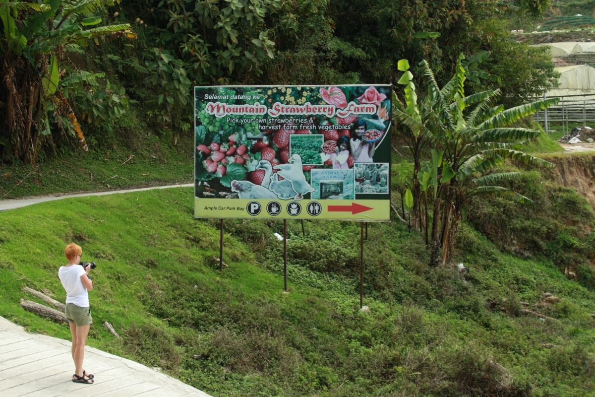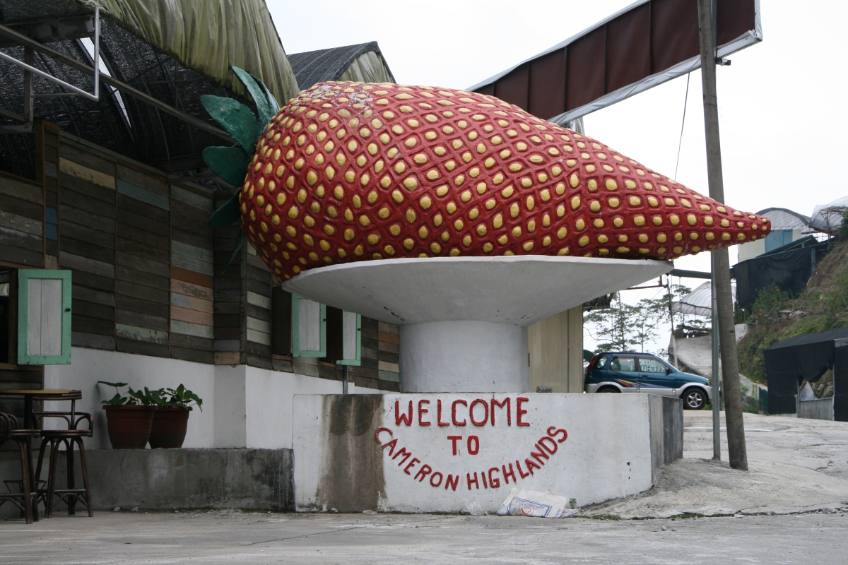 Wypożyczonym samochodem z „korporacji” La Belle (którą wybraliśmy ze względu na opcję zwrotu samochodu na lotniskowym parkingu) wybraliśmy się na całodniową wycieczkę wgłąb Półwyspu Malajskiego. Głównym celem miał być oddalony ok 250km od Penang region Cameron Highlands, słynący z plantacji herbaty i truskawek. Wygląda na to, że Malajowie są wyjątkowo dumni ze swoich truskawek. Na wieść o tym, że wybieramy się w góry, kolejni lokalni przypominali, że koniecznie musimy spróbować ‚tych’ niesamowitych owoców, ponieważ Cameron to „jedyne miejsce gdzie te owoce rosną”. Nie do końca przyswajają fakt, że pochodzimy z kraju będącego jednym z największych światowych eksporterów truskawek. Może to bariera językowa, może to coś innego, ale wszyscy Malajowie z którymi rozmawialiśmy na ten temat uznali to za dobry żart.