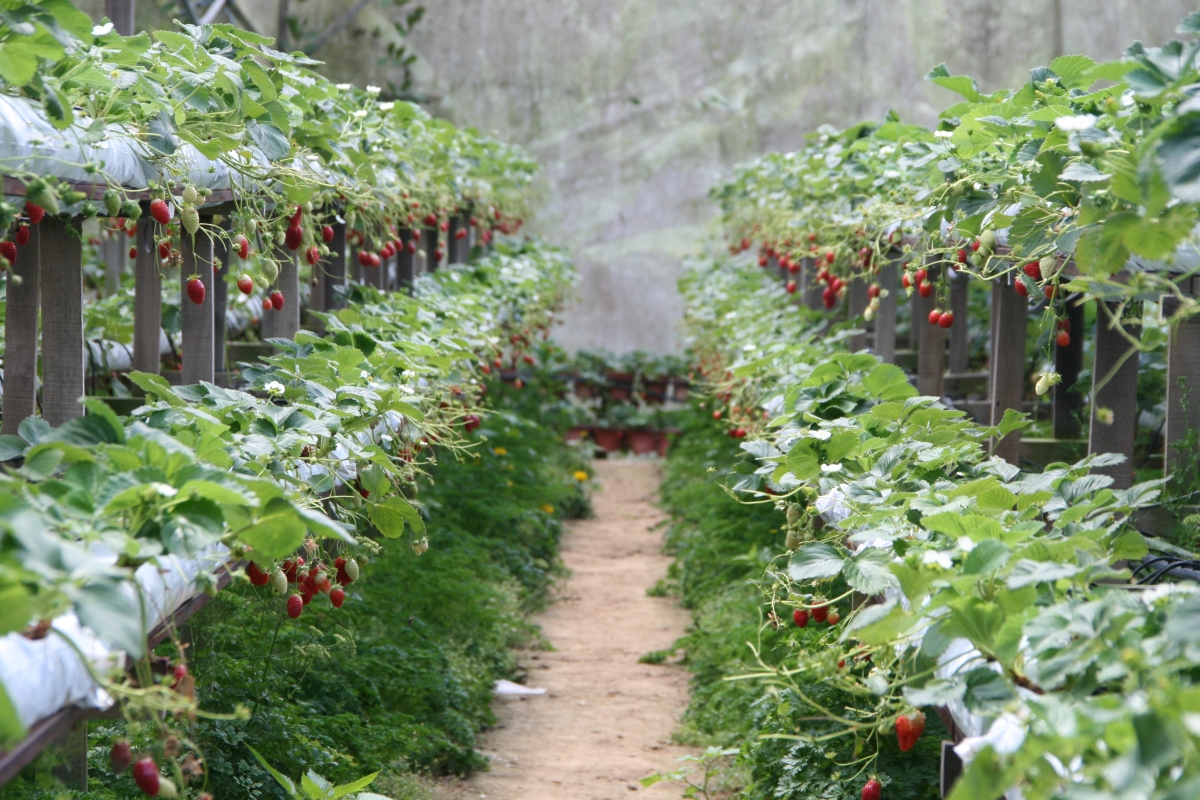 Mijamy w końcu pierwsze farmy truskawek. Widok co najmniej zadziwiający – nie tego się spodziewaliśmy: całe wzgórza obsadzone szklarniami wśród tropikalnej roślinności. Mijając kolejne wioski zaczynamy rozumieć jak duży biznes oparto o tutejsze specjały. Wszędzie produkty gastronomiczne na bazie truskawek, truskawkowe fun parki, gadżety oparte o motyw truskawki – poduszki w kształcie truskawek, breloczki w kształcie truskawek, plecaki w kształcie truskawek, truskawki w kształcie truskawek. Money makes this world goes around.
