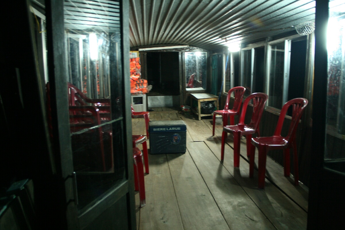 Okazuje się ze zwrot Dongów w rachubę nie wchodzi, mocno się do nich przywiązują, więc jeszcze po chwili sprzeczek ruszamy. Wietnamscy przewoźnicy już się do nas nie uśmiechają, syn strzela focha, kładzie się na środku pokładu i udaje że zasypia, pozostawiając prowadzenie łódki matce. Ruszamy. Widoki fajne, po rzece powolnie posuwają się wielkie barki prawie całe zanurzone w wodzie, rozsypujące się łodzie rybackie, wokoło lasy, górki – sielanka. Na miejsce do drugiego z trzech zakontraktowanych punktów dopływamy po zmroku. Nie jest nam dane nacieszyć się mała urokliwą swiątynią położoną nad samą rzeką – jest za ciemno, nie widać prawie nic a ze strony domku strażnika ujadają kundle nie przerobione jeszcze na kurczaka w knajpie dla białych. Cały czas zastanawiamy się czy sprytni przwoźnicy przypadkiem nie zostawią nas w tym odłegłym punkcie i nie wrócą sobie sami do domu. Na nasze szczęście – czekają. Grobowiec znajdujący sie po drugiej stronie rzeki już odpuszczamy i zarządzamy powrót. Prawie godzinny rejs do domu ma swój urok. Jest juz zupełnie ciemno, jesteśmy jedną z może trzech łodzi na rzece, a na pewno jedynymi białymi w tym rejonie o tej porze. Wysadzeni zostajemy oczywiście w centrum targowiska, gdzie zapewne połowa rodziny naszej pani kapitan posiada swoje stragany i bez wymiany uprzejmości rozchodzimy/rozpływamy się w swoje strony. W tym kraju trzeba uważać na każdą formę zorganizowanej wycieczki, bo mniej lub bardziej przebiegli wietnamczycy zawsze mają swoje sposoby na sprawne wyciąganie Dongów od białasów poświęcajac przy tym jednocześnie jak najmniej czasu i pracy. W przypadku opisanego tu zajścia pozostaje jednak dziwne uczucie – jak ktoś w ogóle mogł wpaść na tak idiotyczny i banalny sposób oszukiwania? No cóż…