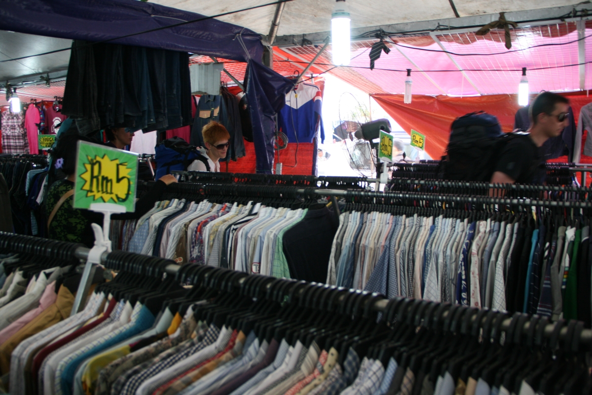 Wysiedliśmy w dzielnicy Chow Kit, w której miał się znajdować nasz hotel. Przeszło 30stC, wielki ruch na ulicach, chodniki całe zastawione namiotami w których Malaje i Chińczycy sprzedają masę brzydkich ciuchów.