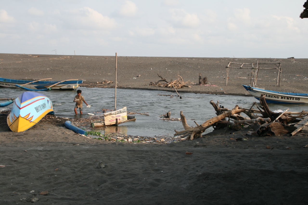 Kierujemy się na drugą świątynię Prambanan, tym razem hinduistyczną. Planowane 40 minut jazdy główną drogą zamienia się na prawie 4-godzinną malowniczą trasę między wukanami, przez wioski garncarskie, wyrobników tofu, suszycieli ryżu i wszelakiej innej formy agralnej. Miejscami dochodzimy do zwężeń teoretycznie nie do przebycia takim dużym samochodem ale ze względu na brak opcji nawrotki pokonujemy kolejne kilometry. W końcu docieramy do Prambanan i tu znowu trafiamy na klimaty z getta – zagraniczni turyści płacą 6-cio krotną stawkę lokalnych. Nieco poirytowowani bierzemy bilety i wchodzimy za bramy. Świątynia nie robi na nas jakiegoś dużego wrażenia, tym bardziej że największy z obiektów jest nieczynny (o czym nas oczywiście nie poinformowano przy zakupie biletów). Obskakujemy całość w ok 30 min. W tej konkurencji Borobudur wypadł lepiej. Odnosimy wrażenie, że obie świątynie promowane są minimalną ilością nakładu, co jest dla nas kompletnie niezrozumiałe. Żadnych znaków na trasie, minimalny ruch nagabywaczy, wszystko takie jakieś na pół gwizdka. Jak na najsławniejszą atrakcję tego typu w całym kraju wydaje się, że masa pieniędzy ucieka koło nosa. Podbicie cen dla zagranicznych turystów raczej nie jest rozwiązaniem. No cóż: mamy jeszcze 7h do dyspozycji zanim zdamy samochód więc postanawiamy sprawdzić malownicze plaże za Yogyakartą. Obieramy kierunek na najbliższą miejscowość nad morzem – Srandakan. Ruch na drodze monstrulany. Chrupki zalewają oba pasy jezdni oklejając naszą toyotę szczelnie na każdym skrzyżowaniu. Aby skręcić niejednokrotnie musimy pokazać kto tu ma większego a kto jest byle chrupkiem (to samo czasem przeżywamy my w kontakcie z tirami i autobusami). Po 50min walki, głodni jak wilki, docieramy na plażę i przecieramy oczy ze zdumienia. Widok plaży zapiera dech w piersiach. No cóż: nazwa miejscowości kojarząca się nieco z fekaliami powinna nam dać do myślenia..